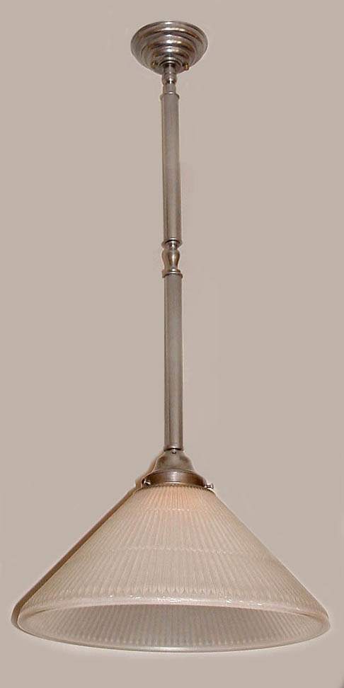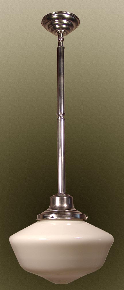 A Classic Schoolhouse Pendant in Polished Nickel Finish.